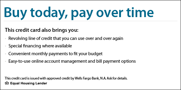 **The Wells Fargo Home Projects Credit Card is issued by Wells Fargo Bank, N.A., an Equal Housing Lender. Special terms apply to qualifying purchases of $500 or more charged with approved credit. The special terms APR will apply until all qualifying purchases are paid in full. Monthly payments of at least 1.90% of the purchase balance are required during the promotional (special terms) period. The APR for Purchases will apply to certain fees (such as a late payment fee) or if you use the card for other transactions. For new accounts, the APR for Purchases is 28.99%. Current cardholders should refer to their credit card agreement for details, including APR and applicable fees. If you are charged interest in any billing cycle, the minimum interest charge will be $1.00. This information is subject to change; for current information, visit "https://wellsfargo.com/plccterms" wellsfargo.com/plccterms (PDF). Offer expires 12/31/2026.